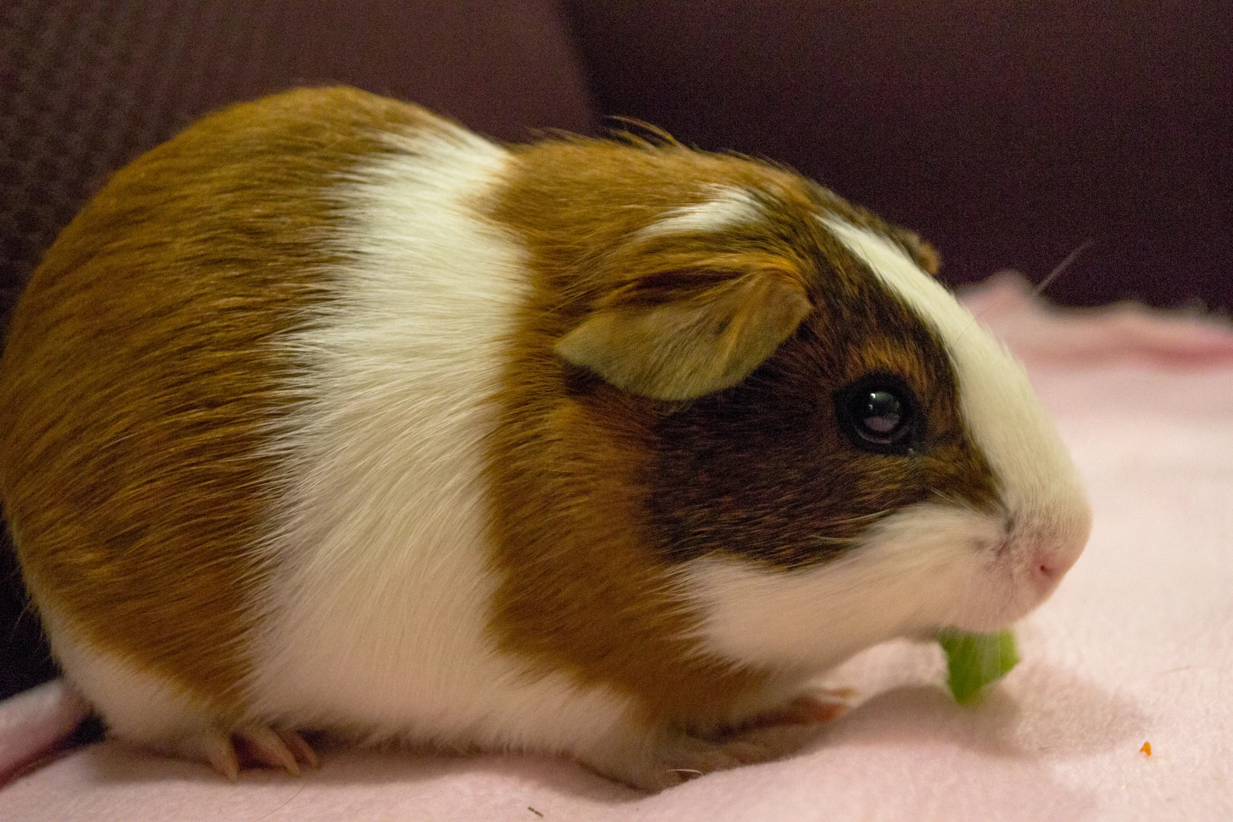 This makes sense, as guinea pigs are herd animals, and do best with a friend or two. Sparky, although pretty new, has already acclimated pretty well to dorm life, seeming very comfortable with people around. Being herbivores, these guinea pigs eat veggies, fruit, and a whole lot of hay. While they are small creatures, they eat a lot — around one-tenth of their body weight each day! Guinea pigs are fun and weird little creatures that are pretty low maintenance and pretty high in greatness. Also, in my research on guinea pigs I’ve found all sorts of weird factoids on them that I feel everyone should know. So, here are some fun things about guinea pigs: guinea pigs have four toes on their front feet and only three toes on their back feet. Baby guinea pigs are called pups (pups!!!). These pups can full on run at only three hours old. Guinea pigs don’t sleep for long periods, but take short naps throughout the day (which I’ll be honest sounds a lot like me). Guinea pigs can’t sweat, so they need to be kept out of the sun and hot places. Also, if you’ve ever wondered what it’d look like if Disney made a short film about guinea pigs multiplying exponentially and overtaking a railway station, then ‘Pigs is Pigs’ is for you! This is very real, it’s a Walt Disney film from 1945 that’s based on a book. It’s eight minutes of white guys arguing over the prices and guinea pigs multiplying at alarming rates.